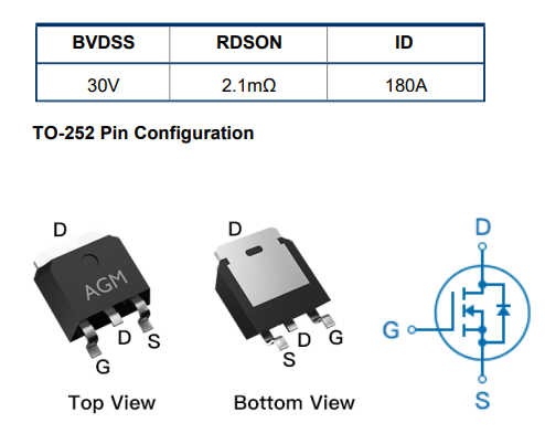 AGM302D1结合了先进的沟槽MOSFET技术与低电阻封装,实现了极低的导通电阻RDS(ON)。该器件非常适合用于负载开关和电池保护应用。