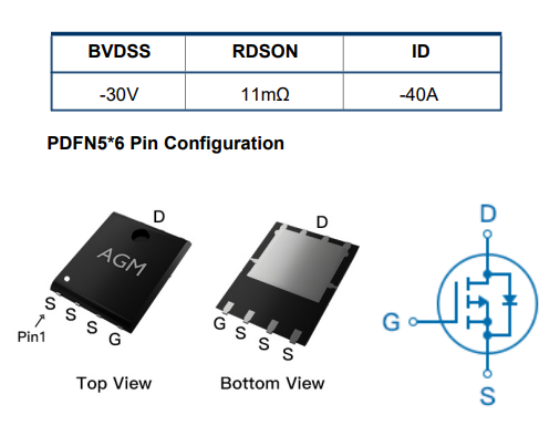 AGM芯控源P沟道功率MOSFET场效应管-AGM30P10A