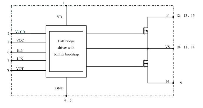 NSH705M1PC是一款7A、500V半桥智能功率模块,专为电机驱动应用设计。该模块集成了7A/500V MOSFET栅极驱动器与自举升压功能,采用紧凑的ESOP13封装,可灵活应用于单相及三相直流无刷电机驱动系统。
