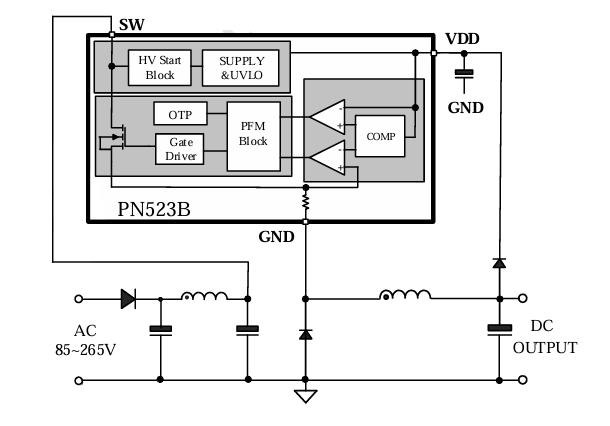 芯朋微代理商非隔离交直流转换芯片PN523B可替代KP3211BSG