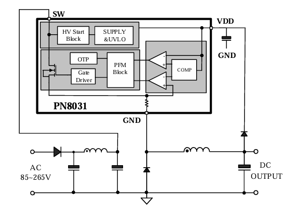 芯朋微非隔离集成高压MOS的AC-DC电源芯片PN8031