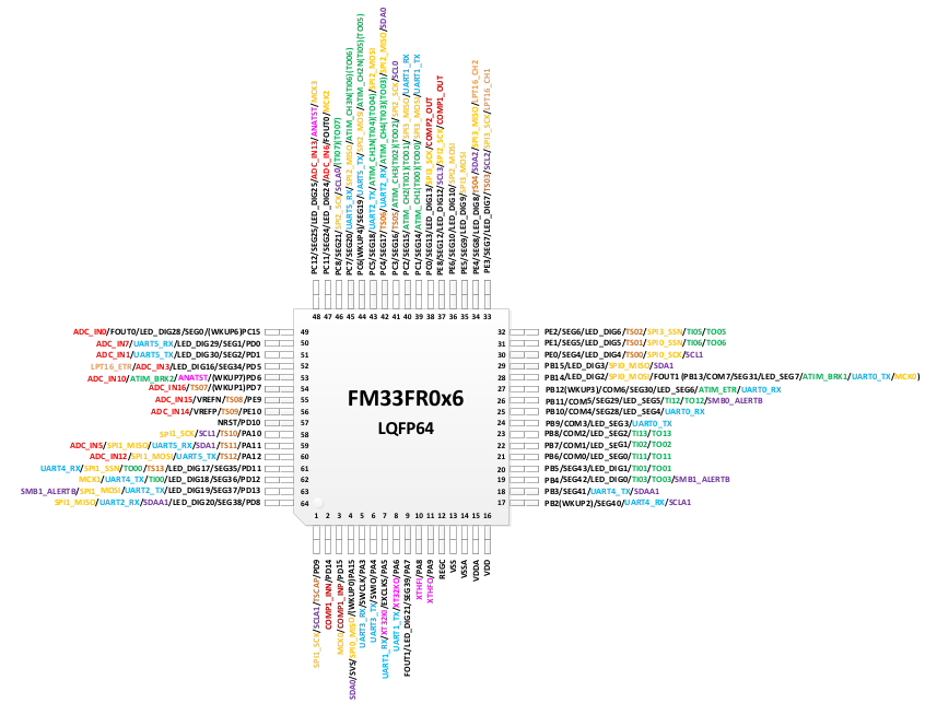 FM33FR0是基于ARM Cortex-M0+的低功耗MCU,支持最大384KB程序flash、8KB数据flash和最大32KB RAM;集成12bit SAR-ADC,最大14通道按键触摸控制器,LCD/LED段码驱动,比较器等丰富外设;具备超宽工作电压范围和优异的低功耗性能。